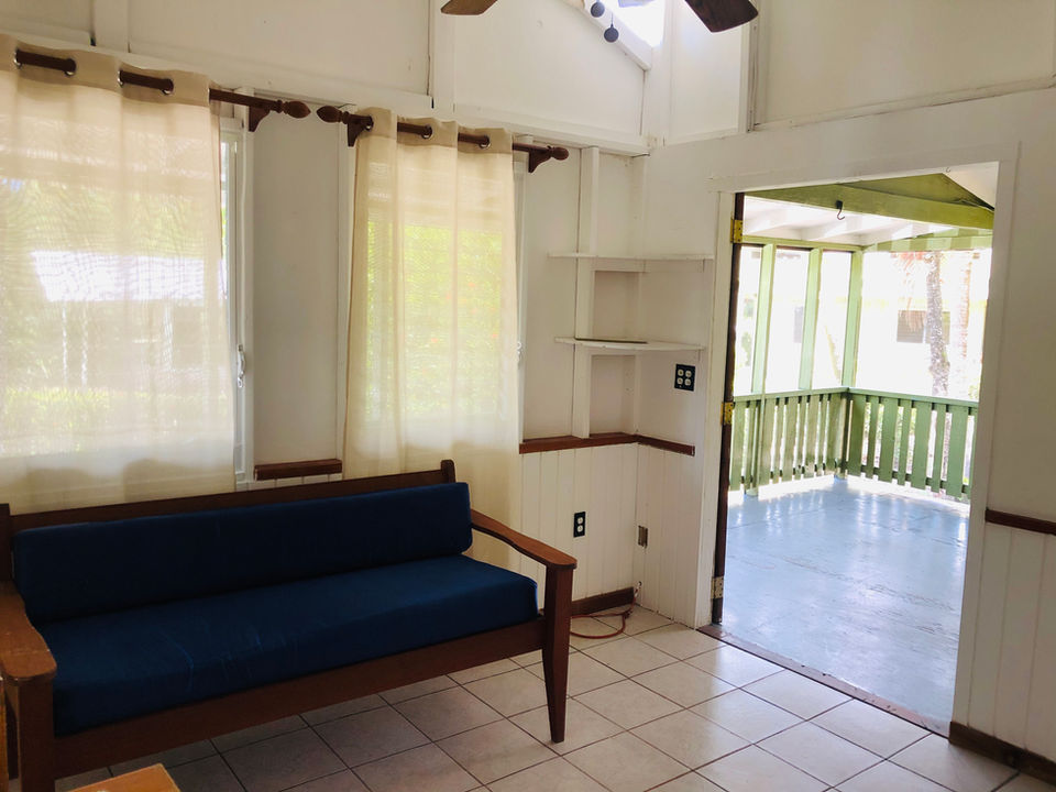 Aqua Rentals are three units that sit on a large property that sets back against the lagoon. It is considered in Placencia Village but it sits outside of the direct village. The property is located south of the airstrip and is about a 5-minute bike ride into the village. This particular apartment is a one bedroom stand alone cabana. The bedroom and living room doors open up to the front screened-in verandah giving plenty of light and airflow. This unit is equipped with AC. The verandah offers a nice space to read a book or get some work on the computer done. The monthly rent is $450US and includes water, sanitation, and wifi. There is a washer and dryer available for you to use as well. Only one small pet is accepted with a non-refundable $300 pet fee. GPS Coordinates: 16.5334685,-88.3622274